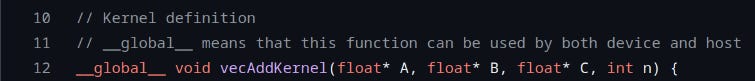 If you are familiar with the C programming language, you may have noticed that the keyword __global__