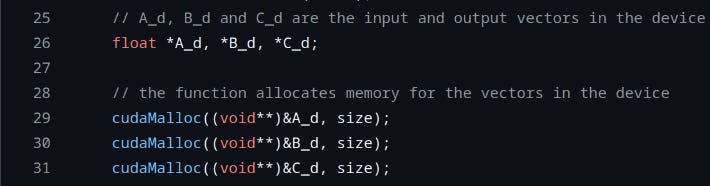 Fortunately, the CUDA programming language provides us with the cudaMalloc