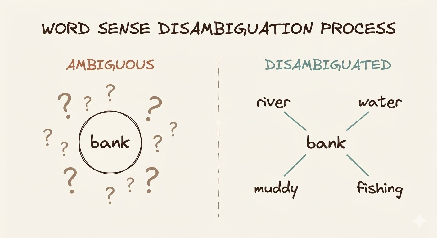 Words don’t mean anything in isolation. “Bank” means one thing after “river” and another after “savings.” “It” could refer to anything. “Light” could be a noun, adjective, or verb.